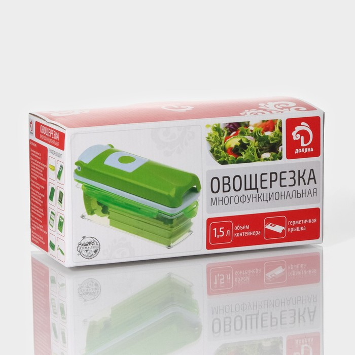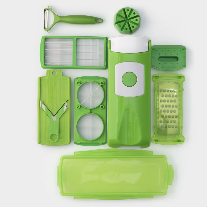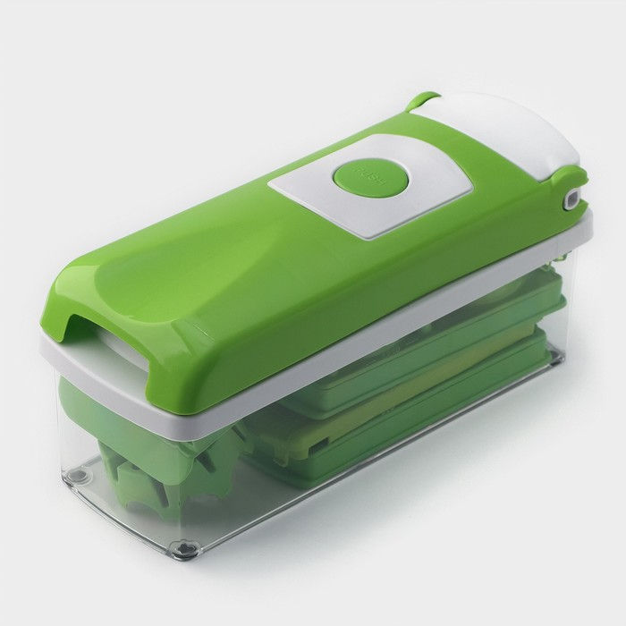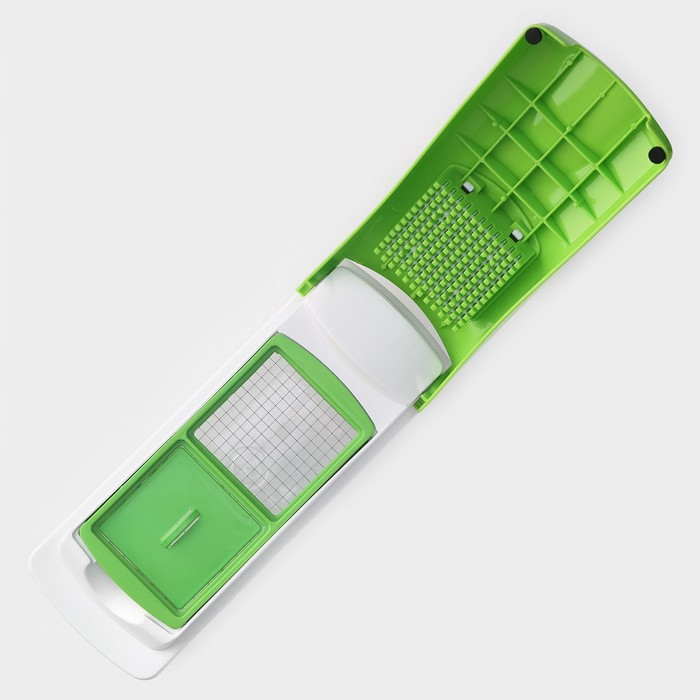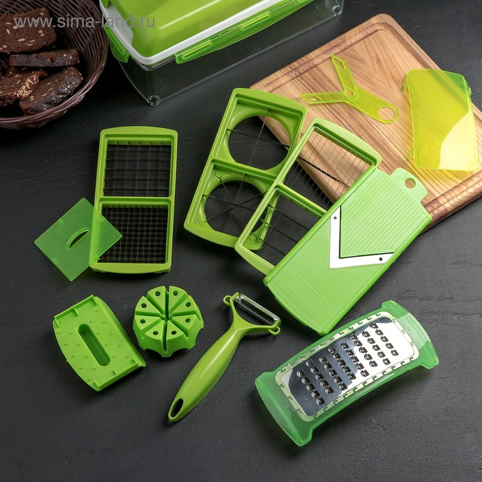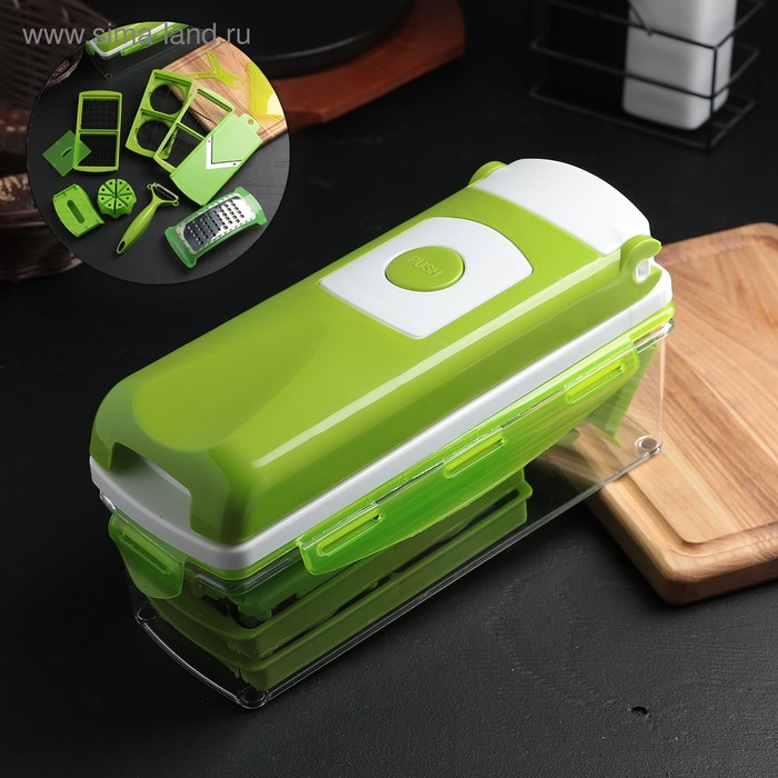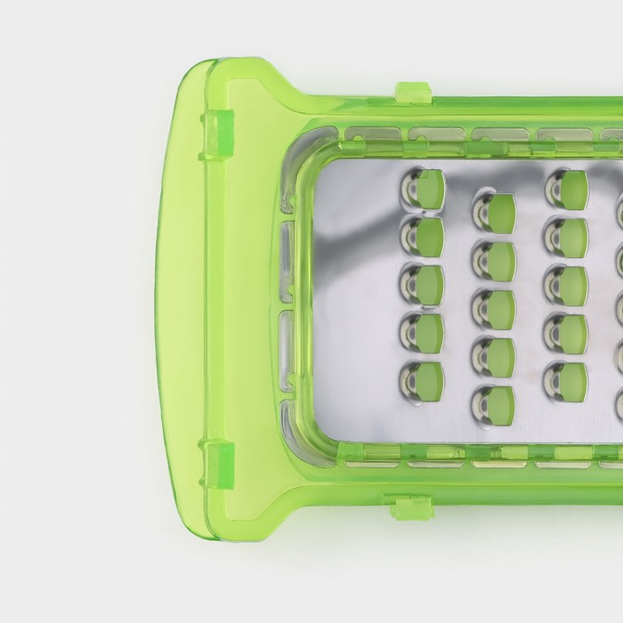 Тёрка с лотком Доляна «Фреш Флеш», 7 насадок, 27×10×12 см, цвет зелёный, белый