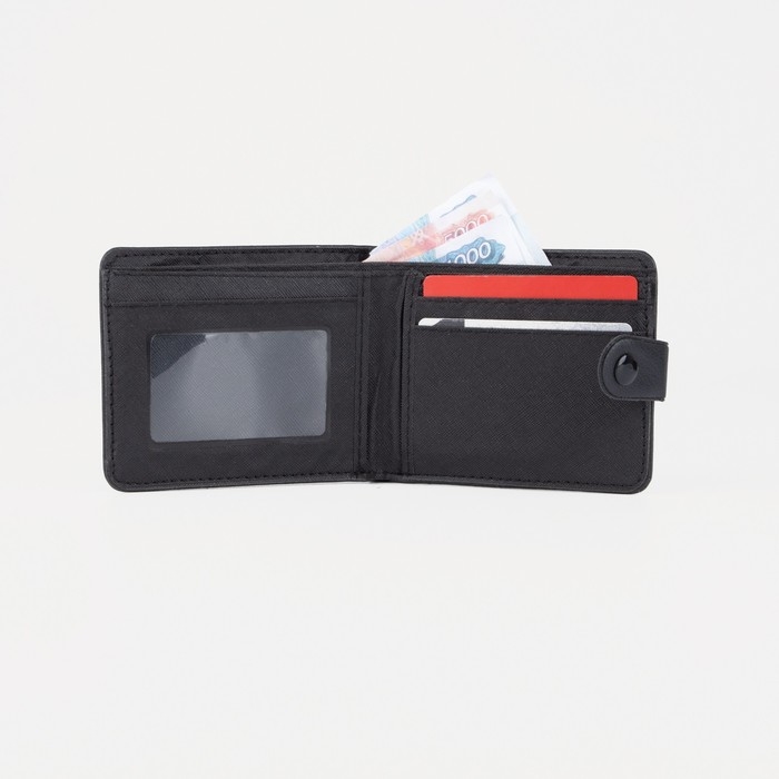 Портмоне мужское на кнопке, отдел для купюр, для карт, цвет чёрный