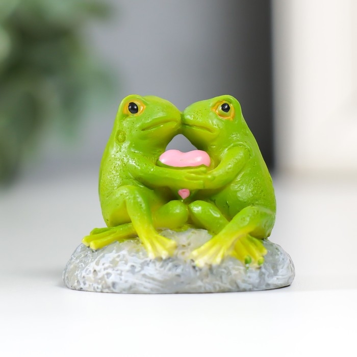 Сувенир полистоун "Лягушата с сердечком на камешке" 4,7х4,3х5,2 см