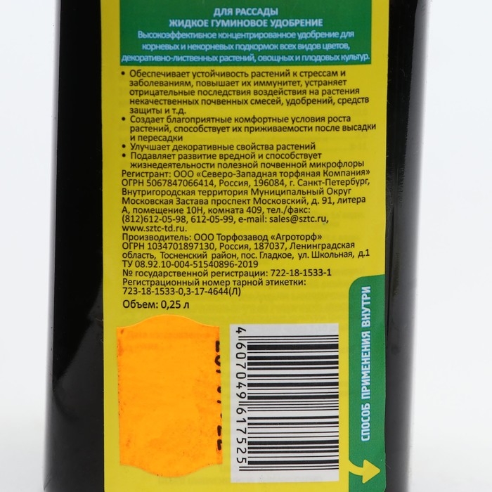 Удобрение гуминовое жидкое для Рассады Скорая помощь, 0,25 л