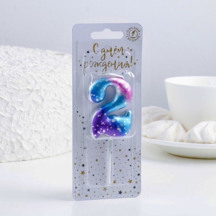 Свеча для торта цифра "2",космос, 5,5 см, 16 мин