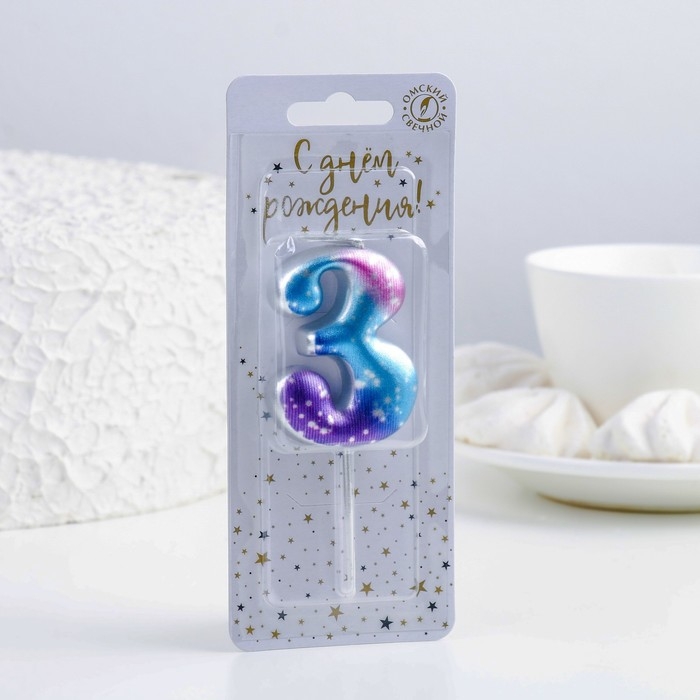 Свеча для торта цифра "3",космос, 5,5 см, 16 мин