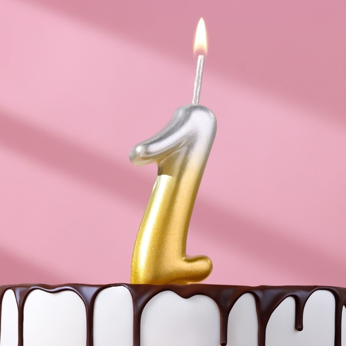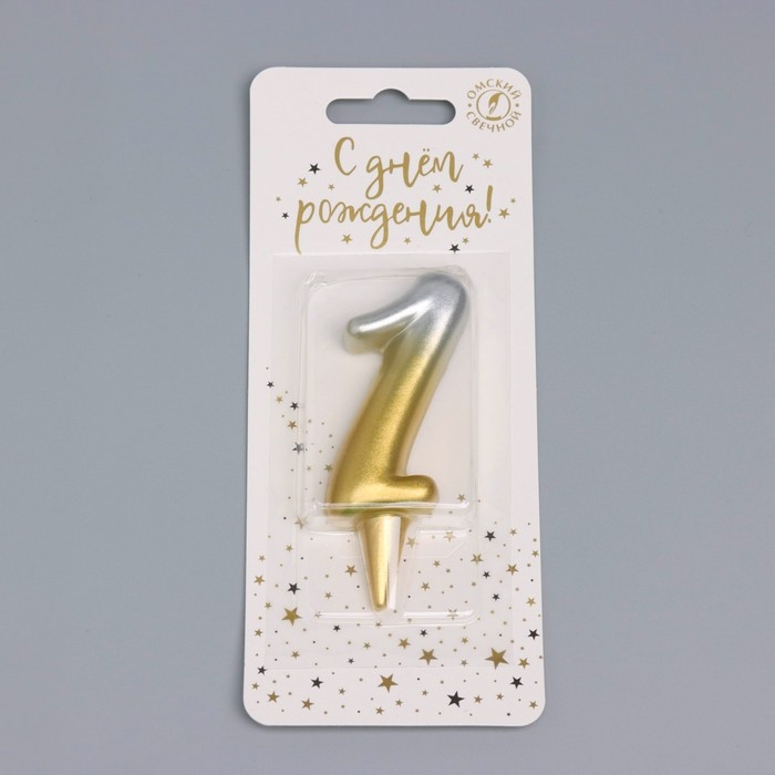 Свеча для торта цифра "Овал" "1", 5,5 см, золото-серебро