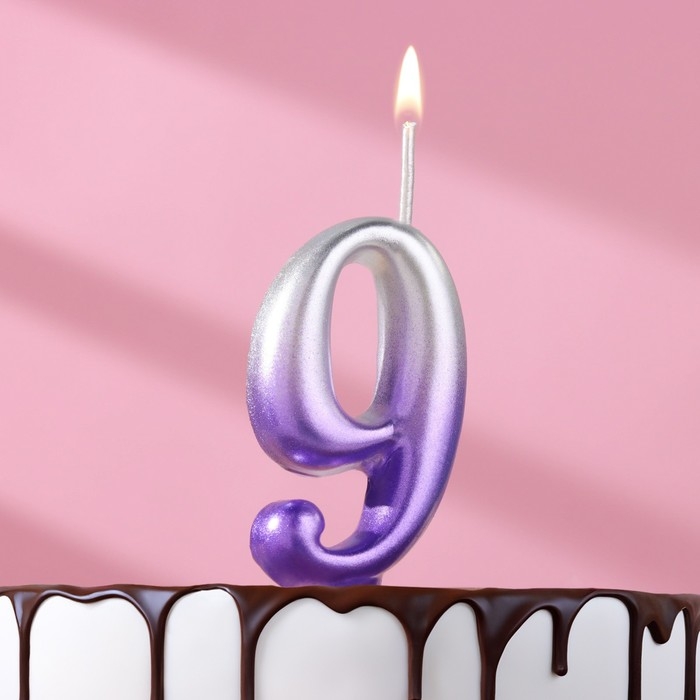 Свеча для торта "Овал", цифра "9", 5,5 см, серебро-сирень