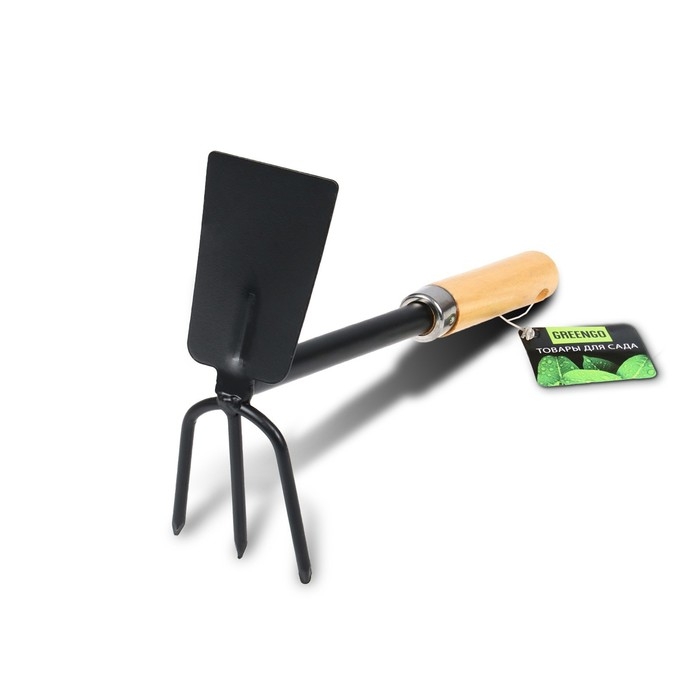 Мотыжка комбинированная Greengo, длина 30 см, 3 зубца, эргономичная прорезиненная ручка