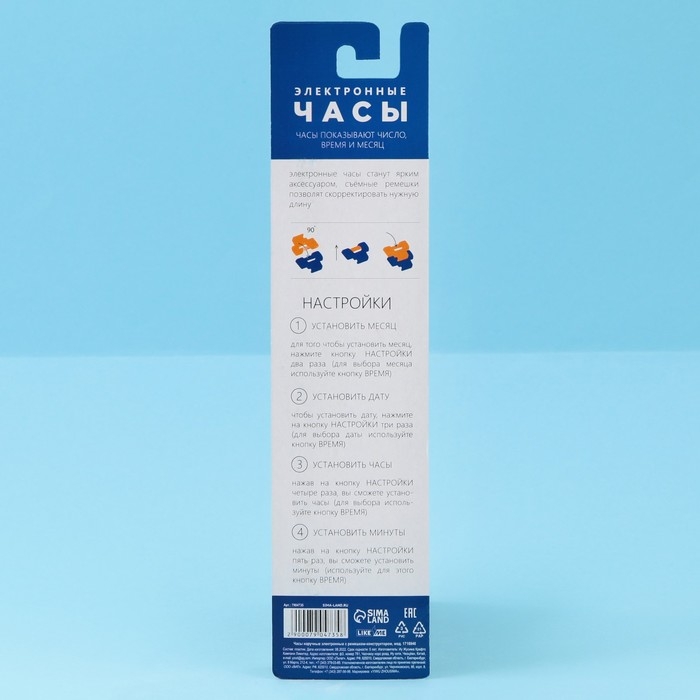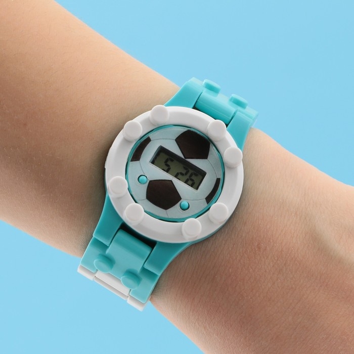 Электронные часы с ремешком-конструктором станут ярким аксессуаром вашего ребенка, съемные ремешки позволят скорретировать нужную длину (инструкция по сборке расположена на обороте упаковки). Часы показывают число, время и месяц.