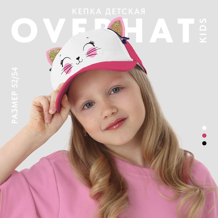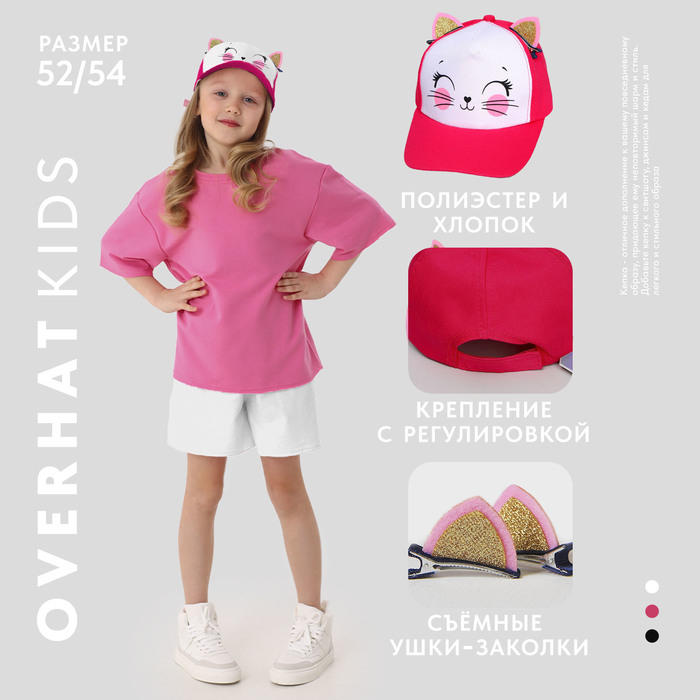 Кепка детская для девочки «Кошечка-красотка», с заколочками, р-р. 52-54, 5-7 лет