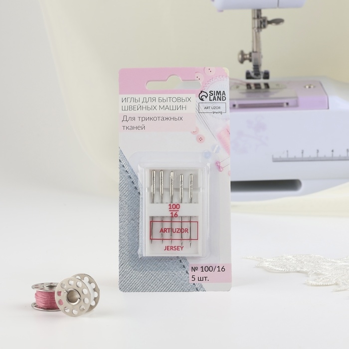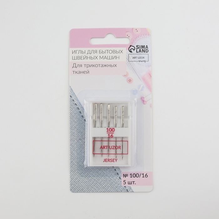 Иглы для бытовых швейных машин, для трикотажа, №100/16, 5 шт