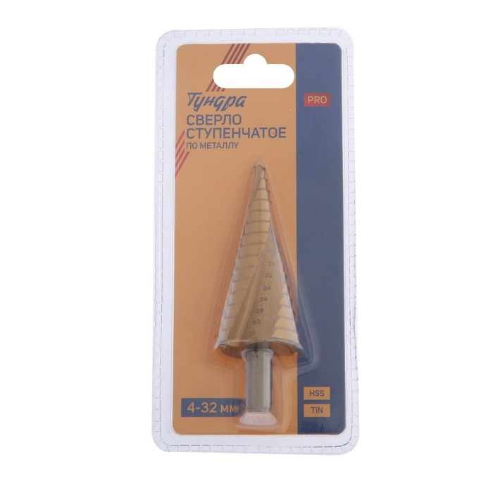 Сверло ступенчатое ТУНДРА ПРОФИ, HSS, TiN, спиральный профиль, трехгран. хвостовик, 4-32 мм