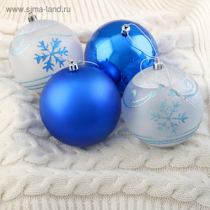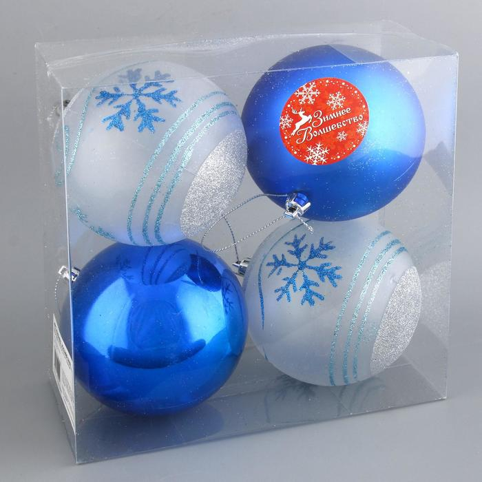 Набор шаров пластик d-10 см, 4 шт "Снежный вальс" синий белый
