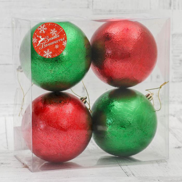 Набор шаров пластик d-10 см, 4 шт "Калисса" красный зелёный