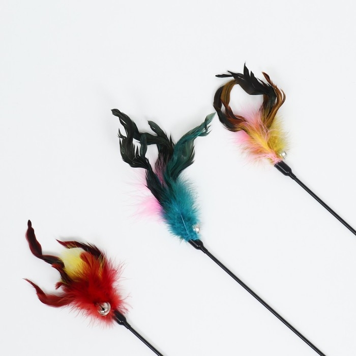 Дразнилка "Перышко" с бубенчиком, 65 см, микс цветов