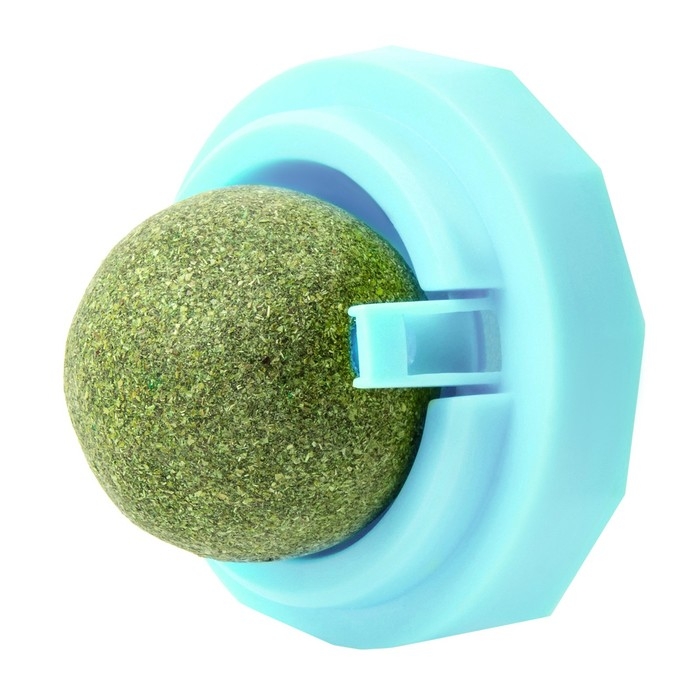 Конструкция вращения позволяет кошке облизывать шарик равномерно. Задняя часть игрушки из кошачьей мяты оснащена двусторонней липкой лентой, которую можно использовать для приклеивания стен, окон, пола, ножек стола и т.д.