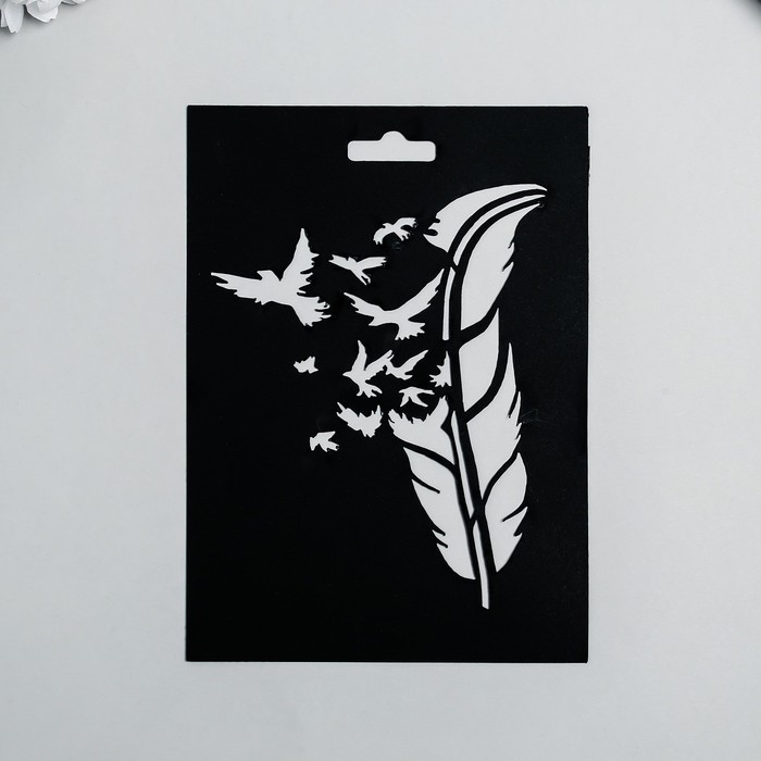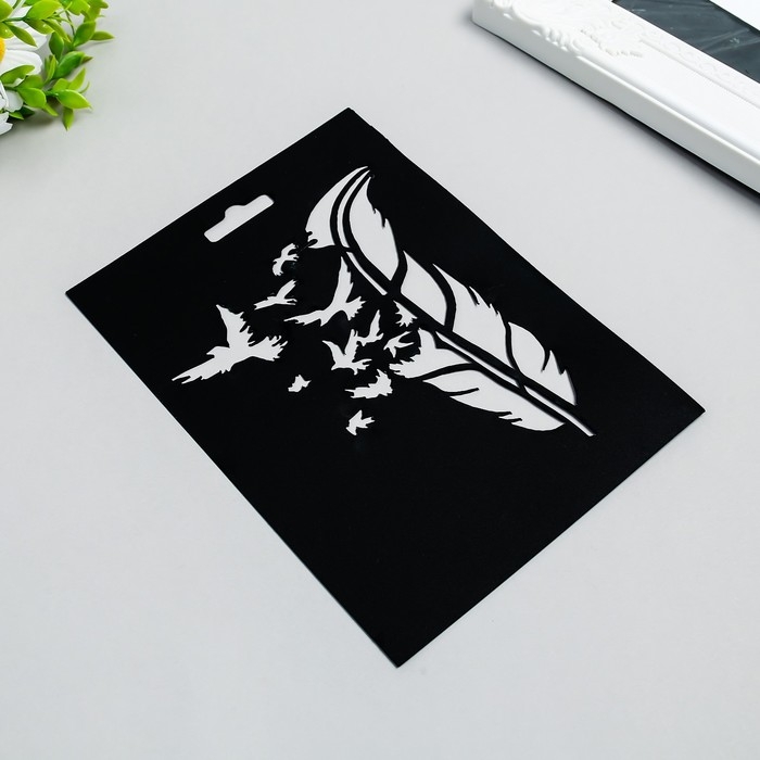 Трафарет пластиковый "Перо и птицы" 14,5х20см