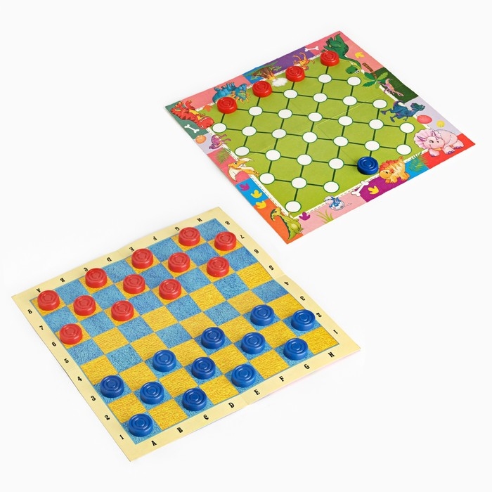 Настольные игры 2 в 1 "Диношашки": шашки, хищники и травоядные, d-2.2 см, 31.2 х 31.2 см