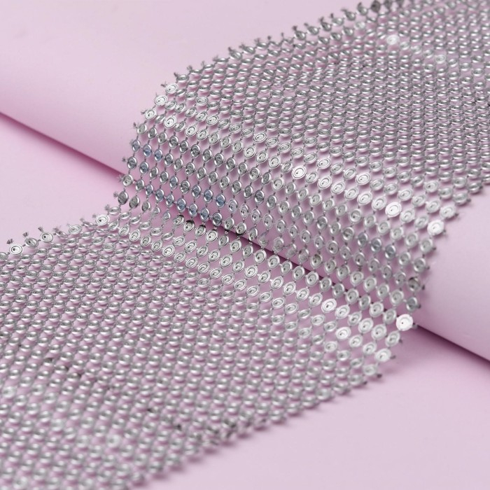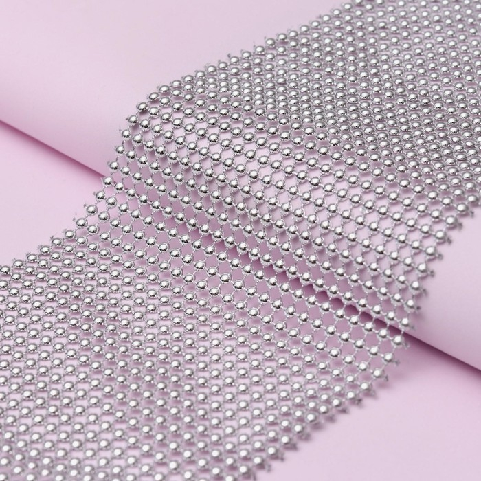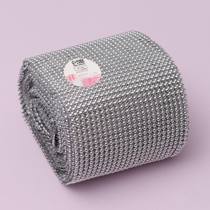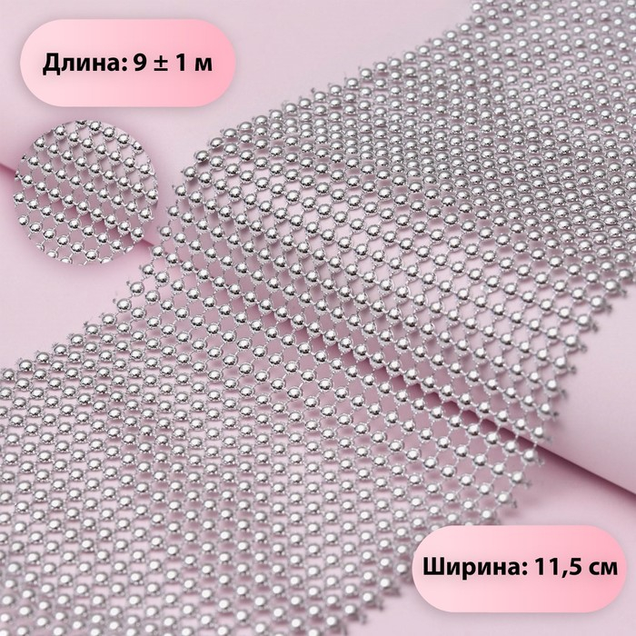 Лента с имитацией выпуклых страз, 11,5 см, 9 ± 1 м, цвет серебряный