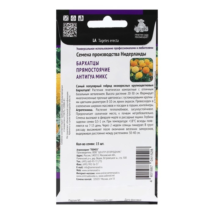 Семена цветов Бархатцы прямостоячие "Антигуа Микс" 15 шт