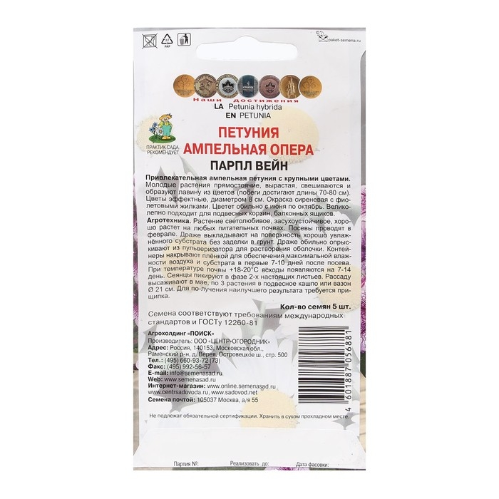 Семена цветов Петуния ампельная "Опера Парпл Вейн" 5 шт