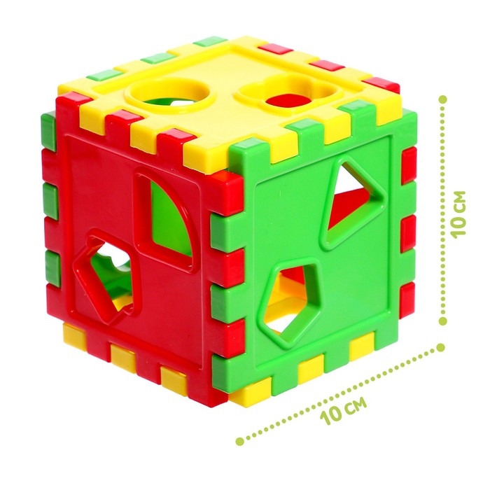 - Детали сортера — пронумерованные фигурки, а сам сортер выполнен в виде разборного куба.