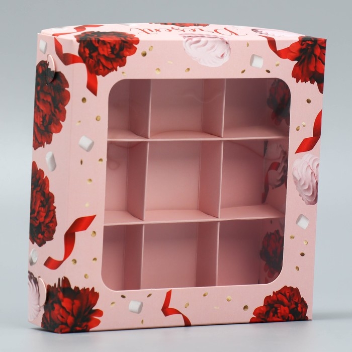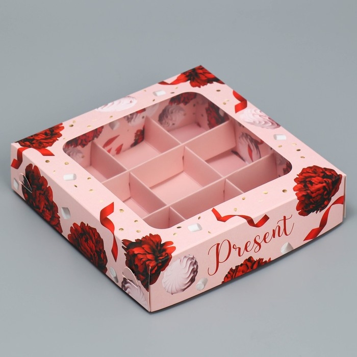 Коробка для конфет, кондитерская упаковка, 9 ячеек, Present, 14.7 х 14.7 х 3.5 см