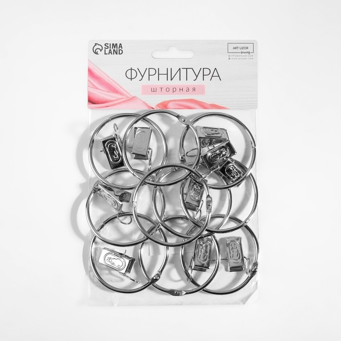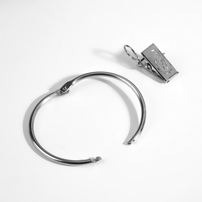 Набор для штор, кольцо разъёмное, d = 52/58 мм, 10 шт, зажим, 33 × 11 мм, 10 шт, цвет серебряный
