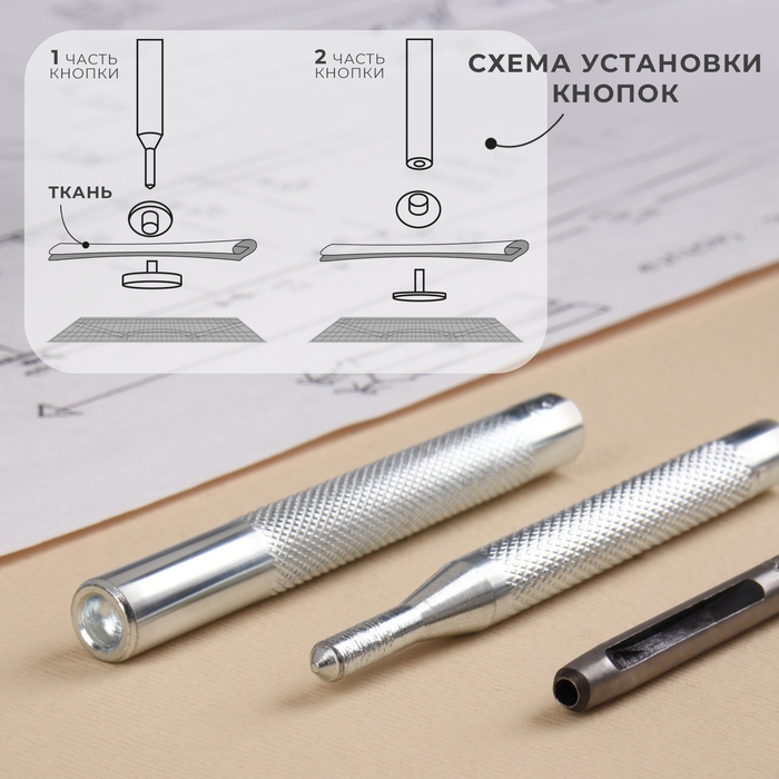 Набор инструментов для ручной установки S-образных кнопок, с матом, №633, d = 12 мм