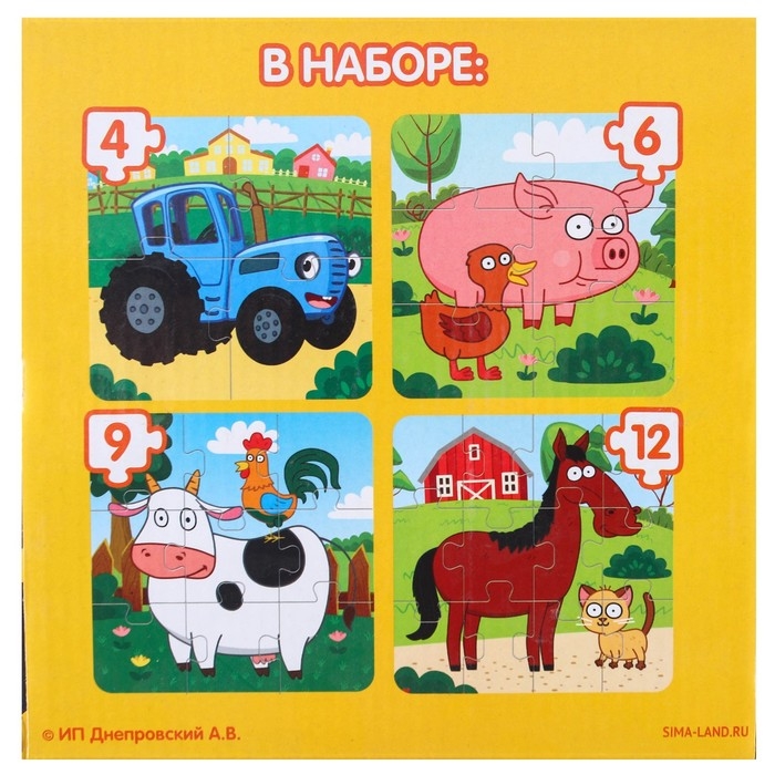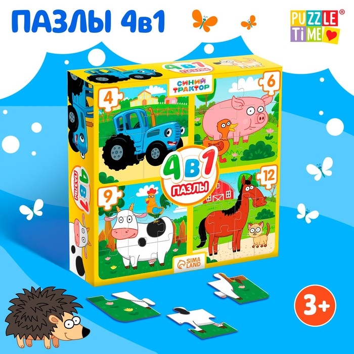 Набор пазлов 4 в 1 «Синий трактор на ферме»