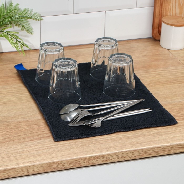 Коврик для сушки посуды Доляна «Лофт», 30×40 см, микрофибра, цвет чёрный