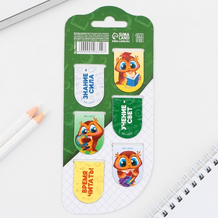 Закладки магнитные на подложке для книг на выпускной «Познавай мир» 6 штук
