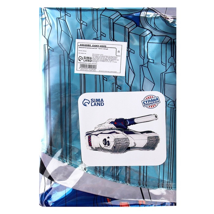 Шар фольгированный 24" «Танк», белый
