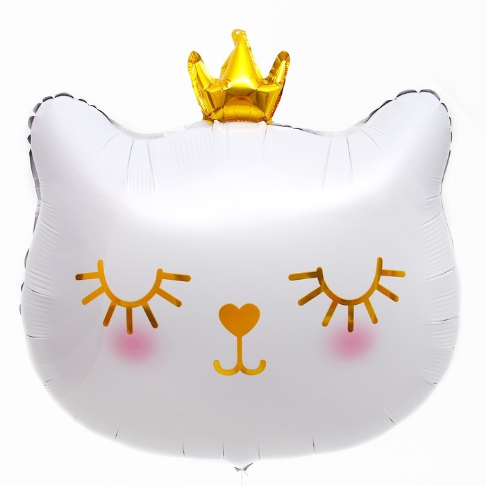 Шар фольгированный 24" «Милый котёнок с короной», цвет белый