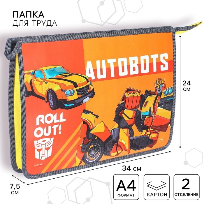 Папка для труда А4, на молнии, с эффектом металлика, Трансформеры