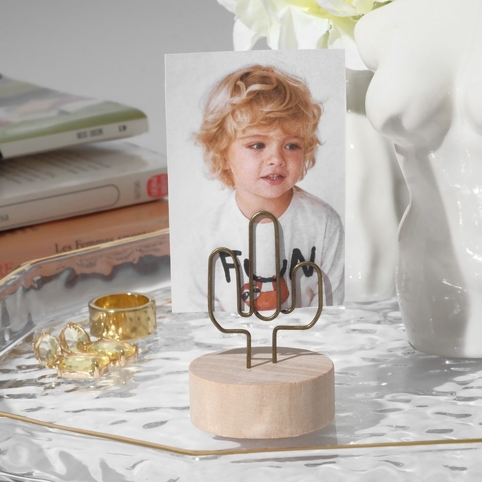 Ценникодержатель с зажимом «Кактус», 4×4×5,5 см, цвет чернёное золото