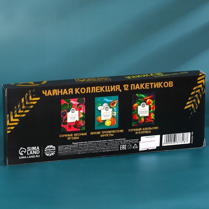Чай подарочный «Стратегический запас»: апельсин и корица, тропические фрукты, лесные ягоды, 12 пакетиков х 1,8 г.
