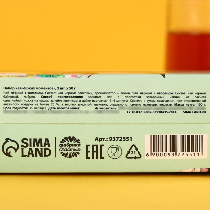Набор чая «Ярких моментов»: чай чёрный с лимоном 50 г., чай чёрный с чабрецом 50 г.