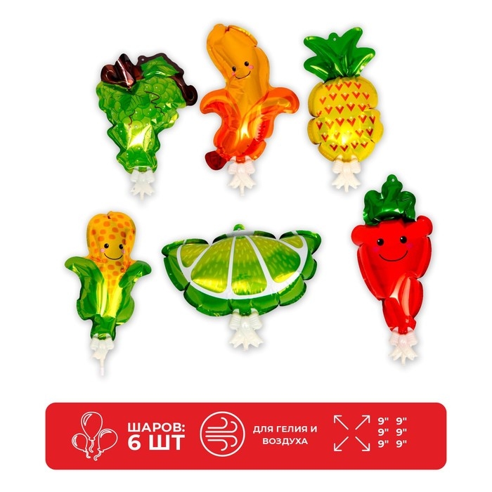 Шар-самодув 9" «Фруктово-овощной МИКС», набор 6 шт.