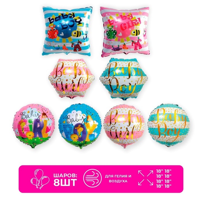 Набор фольгированных шаров 18" «Мальчик или девочка», 8 шт.