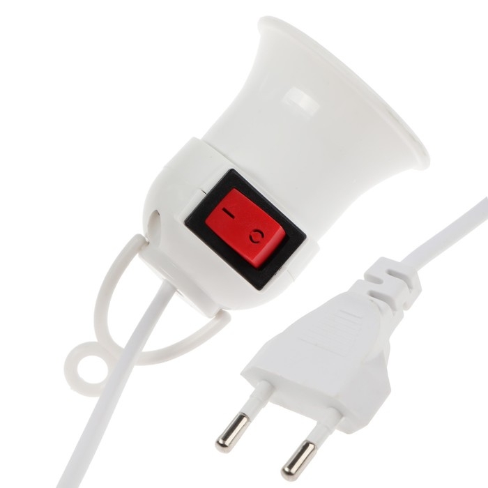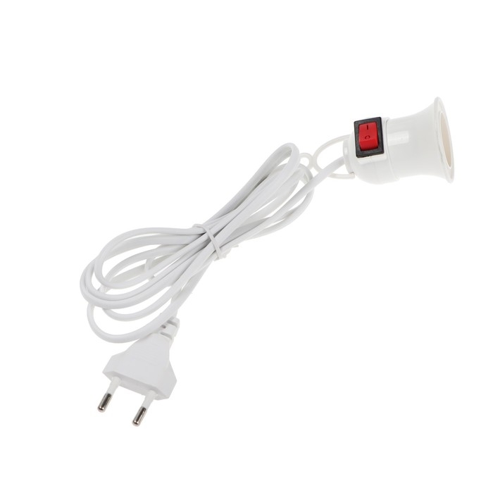 Светильник с выключателем, под лампу, Е27, провод 2 м, белый