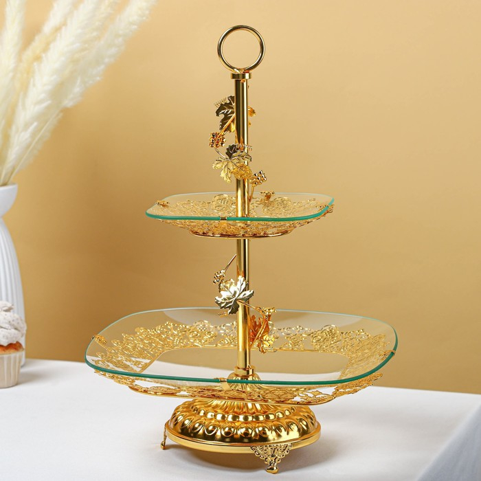Подставка для десертов позволит эффектно подать сладости и закуски к праздничному столу. Подставка выполнена из металла «под золото».