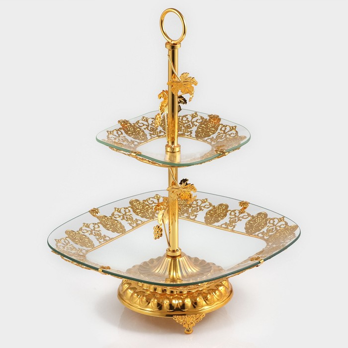 Этажёрка - фруктовница квадратная, 2 яруса, 29×29 см, 17×17 см, высота 43 см, стекло