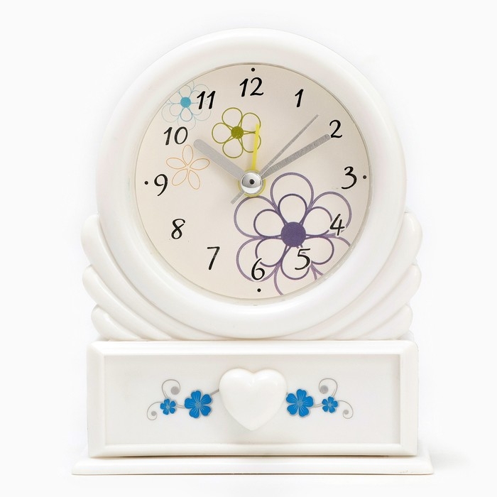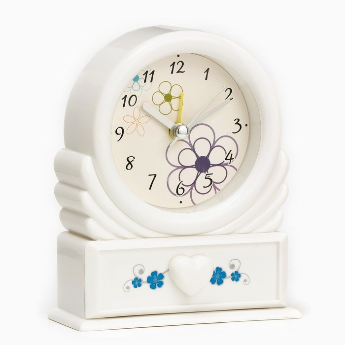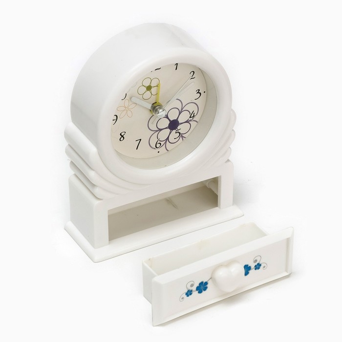 Часы - будильник настольные "Цветок" с ящичком для мелочей, d-6.5 см, 10.2 х 12.5 см, АА