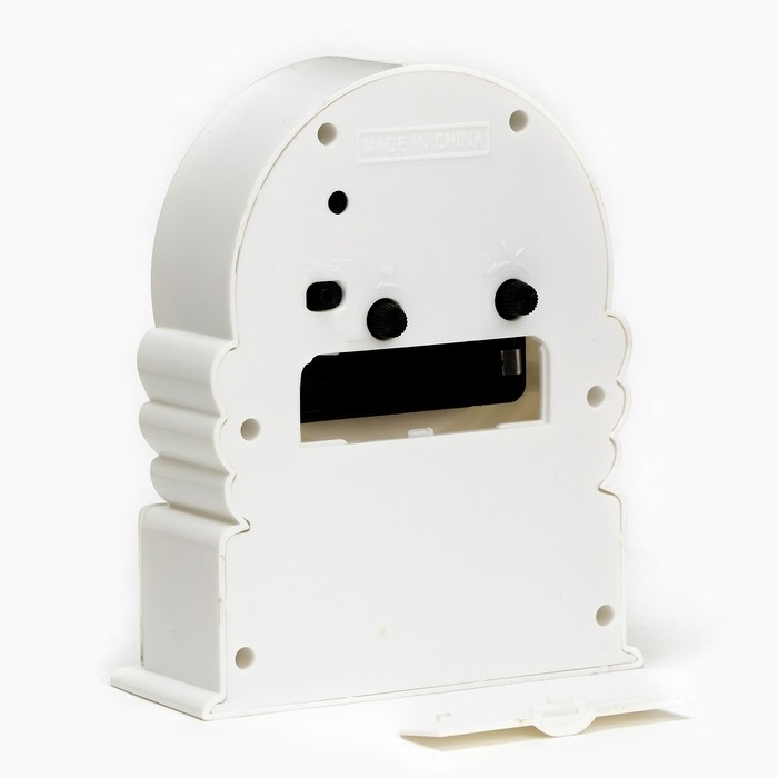 - Будильник оснащён кварцевым механизмом с дискретным ходом стрелок.