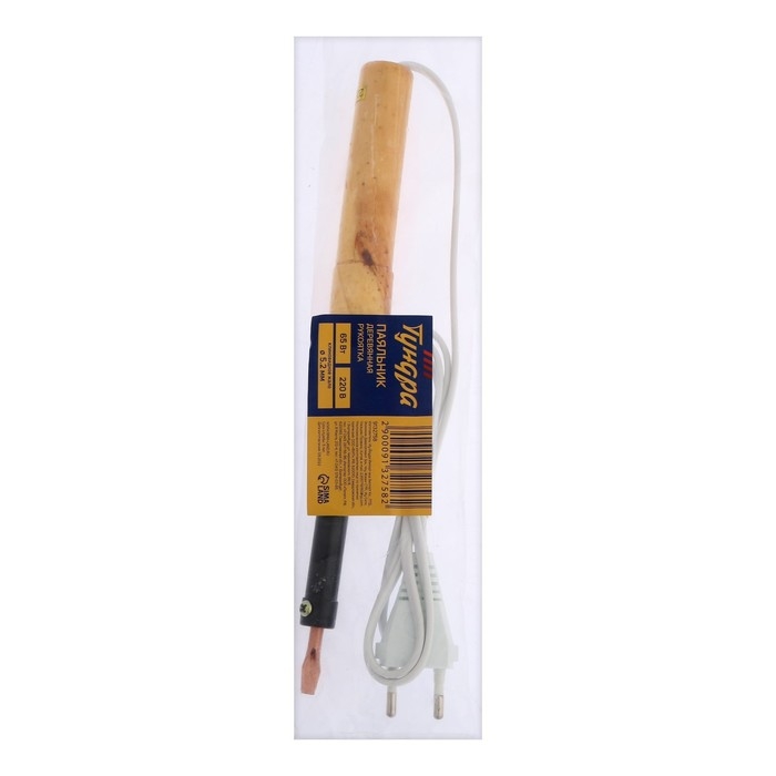 Паяльник ТУНДРА, ЭПСН, деревянная рукоятка, клиновидное жало d=5.2 мм, 65 Вт, 220 В