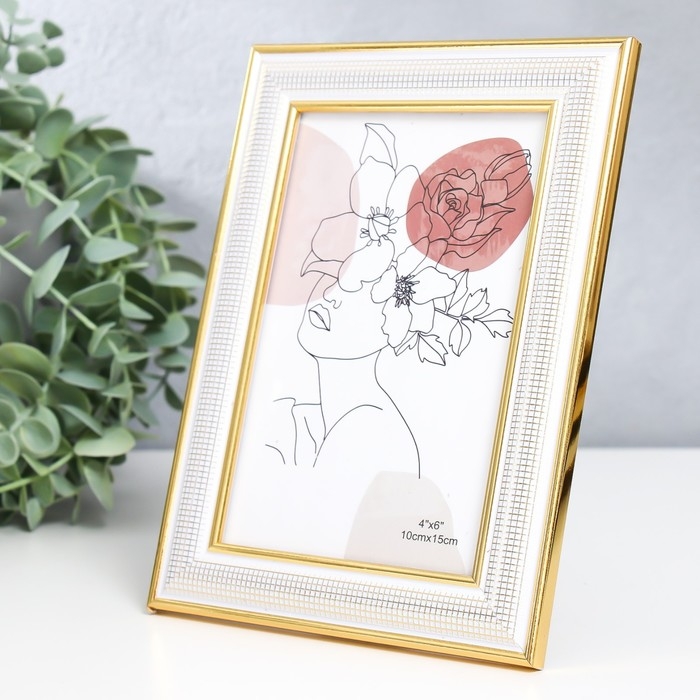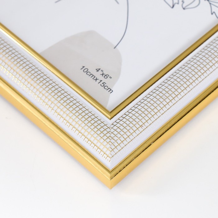 Фоторамка пластик 10х15 см "Мелкая сетка" белая с двойной золотой обводкой 18,3х13,5 см