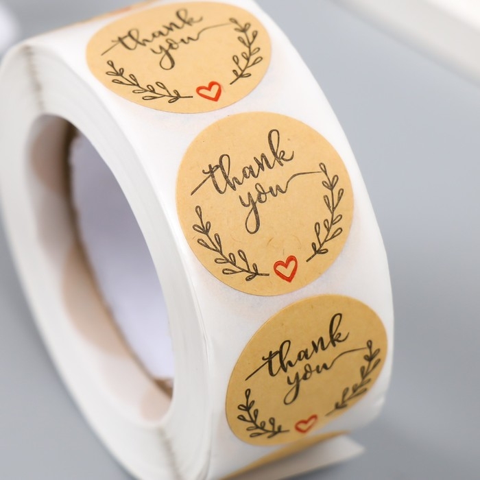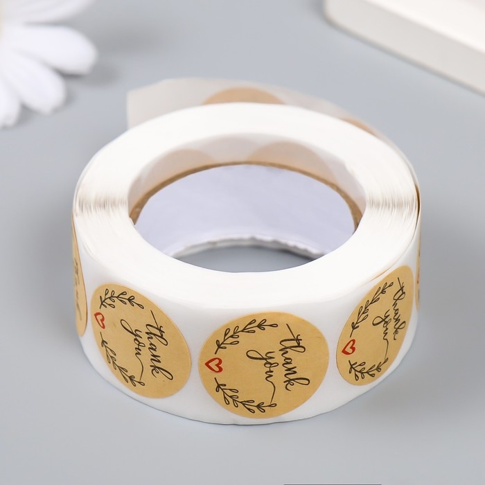 Наклейка бумага "Крафт. Благодарность" d=2,5 см 500 шт в рулоне 3х6,5х6,5 см
