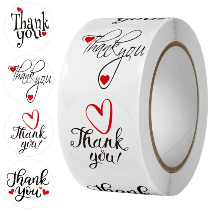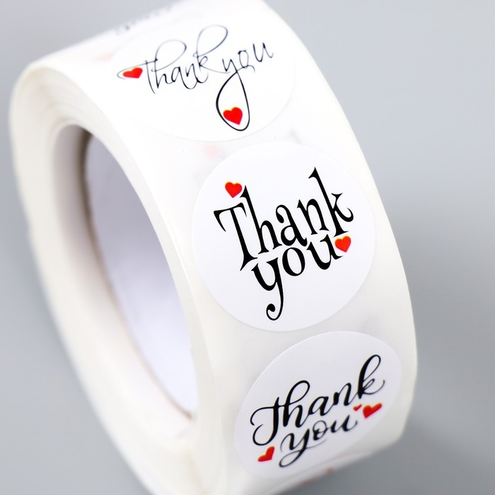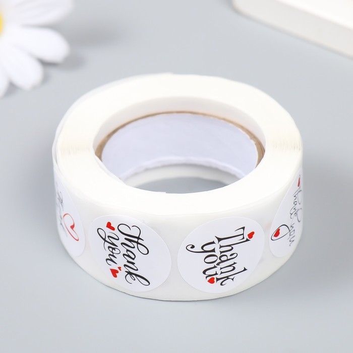 Наклейка бумага "Сердце. Благодарность" d=2,5 см 500 шт в рулоне 3х6,5х6,5 см