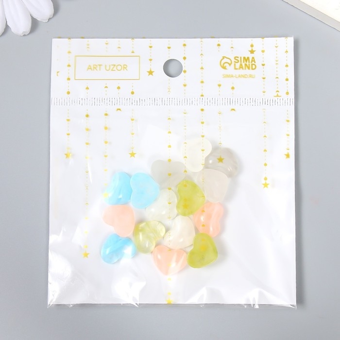 Декор для творчества пластик "Сердечки" глянец набор 15 шт МИКС 1,5х1,2х0,5 см