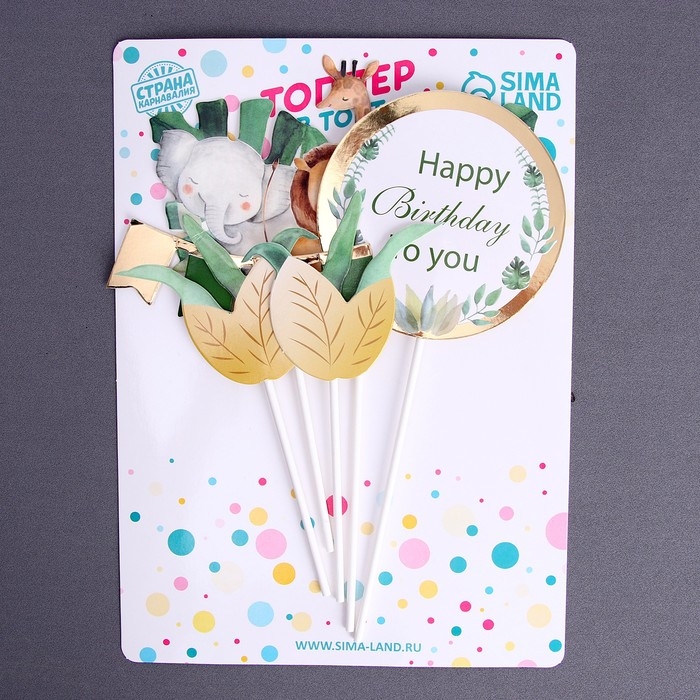 Топпер «С днём рождения», сафари, в наборе 5 штук