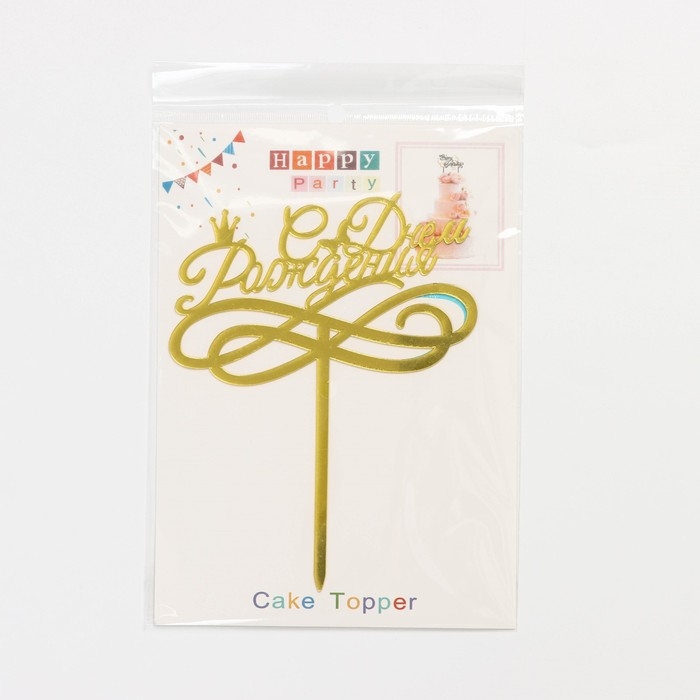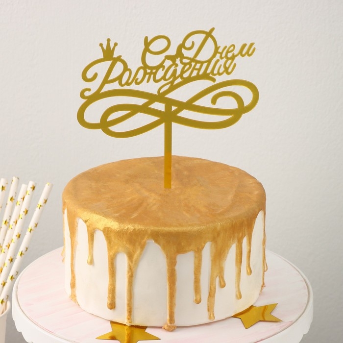 Топпер для торта «С Днём Рождения», 15×13,5 см, цвет золотой