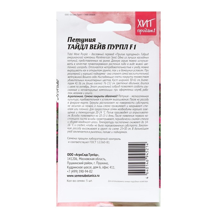 Семена Цветов Петуния "Тайдл Вейв Пурпл", 5 шт